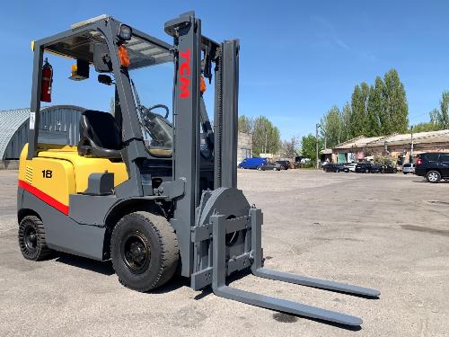 Вилковий дизельний автонавантажувач TCM (Nissan) з ротатором, з кабiною та пічкою. 2017 року (напрацювання 4993 м/год). Модель FD18T14. Номiнальна вантажопідйомність 1.8 тонни. Максимальна висота підйому вантажу 3 метри. Щогла двохсекційна (duplex) яка не втрачає вантажопідйомності при висоті підйому. Коробка перемикання передач надiйна i найпоширенiша на данний час - гiдромеханiка (автоматична із гідротрансформатором). Обладнаний сучасним економічним двигуном Kubota D1503, 3-циліндровий, робочим об'ємом 1.5 літра і потужністю 33 к. с. який славиться своєю надійністю і невибагливістю і головне ремонтопридатний. Управління гідравлікою здійснюється простою і перевіреною часом системою - важелями. Додатково обладнаний напiвкабіною та пічкою для роботи в холодну пору, а також ротаційною кареткою (призначена для перевороту різних вантажів, наприклад ящиків овочевих). Колеса 10 діаметра на ведучiй осі, що покращує прохідність автонавантажувача і збільшує його кліренс.